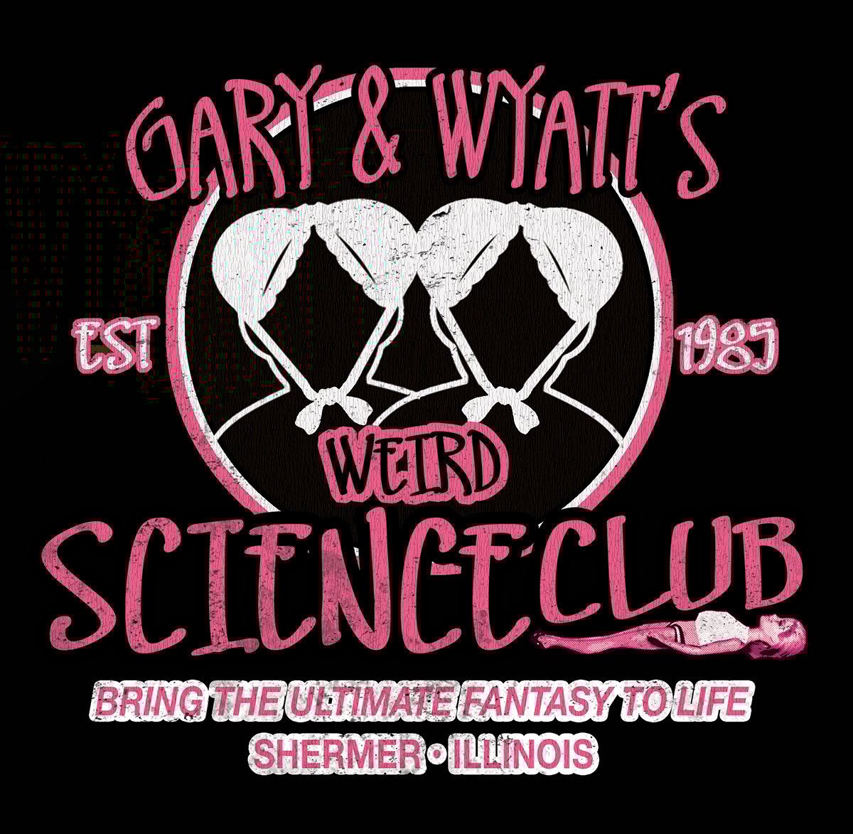 Weird Science design printed onto a black T-shirt.