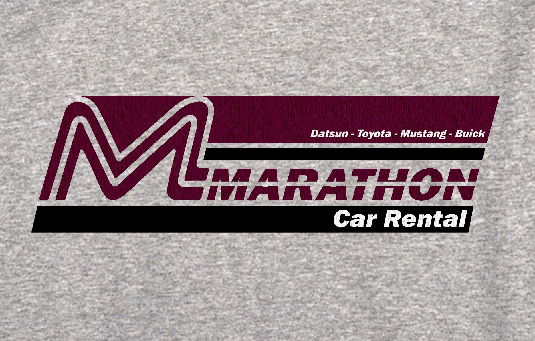 Marathon Car Rental inspired design printed onto a Sports Grey T-shirt.