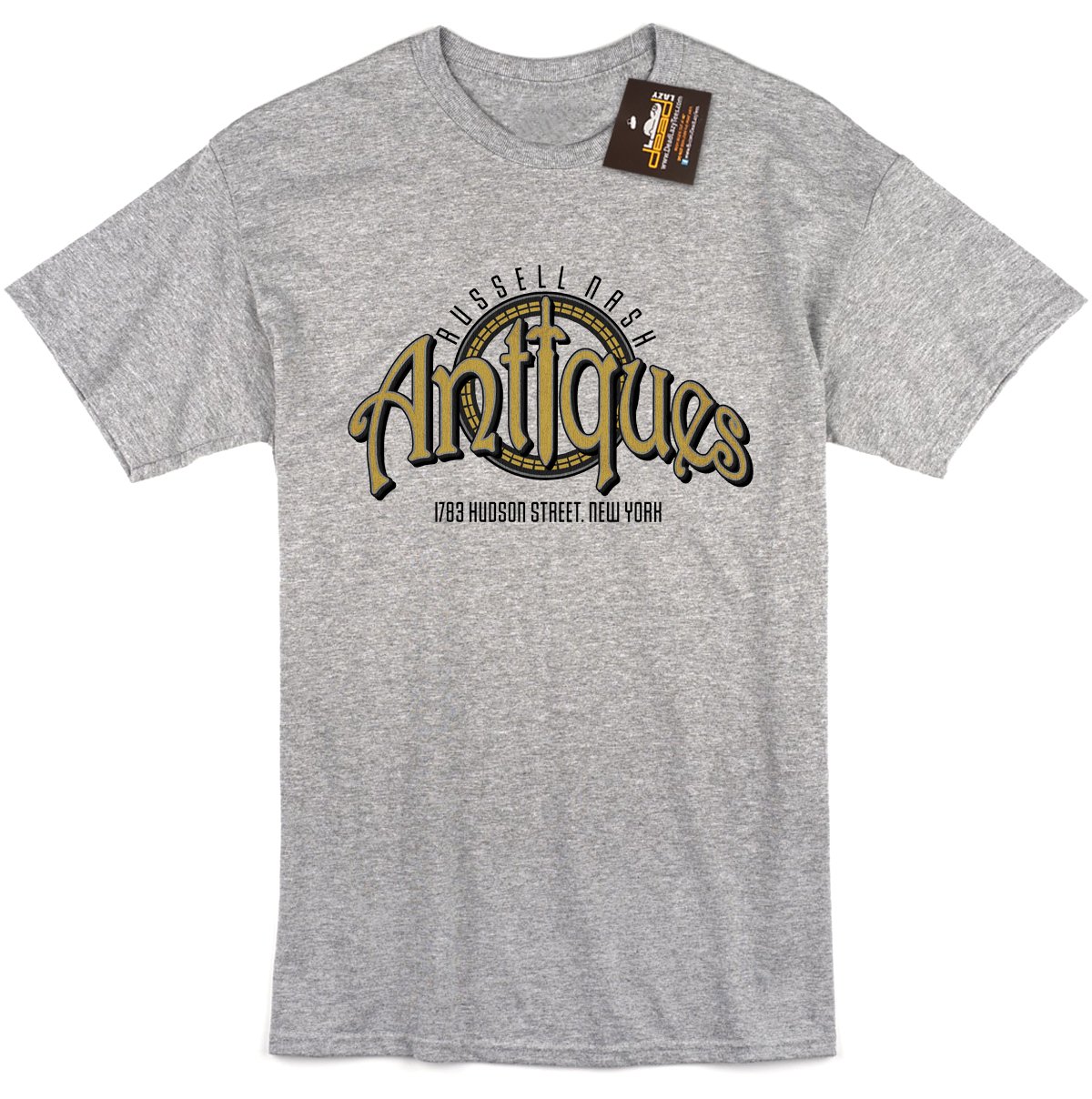 Russell Nash Antiques inspired design printed onto a Sports Grey T-shirt.