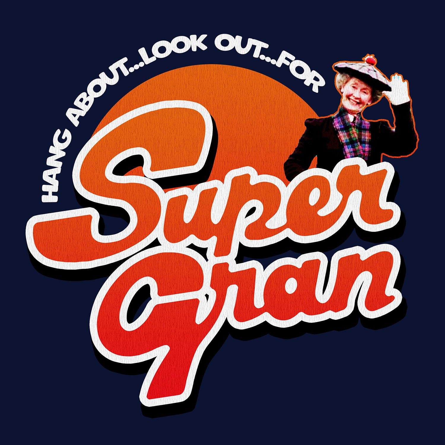 Super Gran inspired design printed onto a Navy T-shirt.